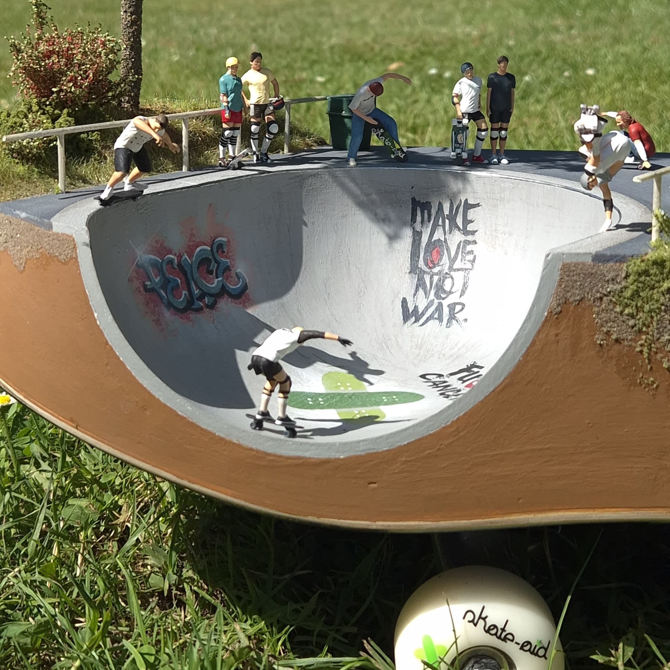 Für Skate Aid hat Andi von Schrumpfmich ein Diorama gebaut. Auf einem Skateboard. Und wir haben das Titus Skate-Team aus den 80ern geschrumpft und jetzt skaten sie wieder :) im Maßstab 1:43