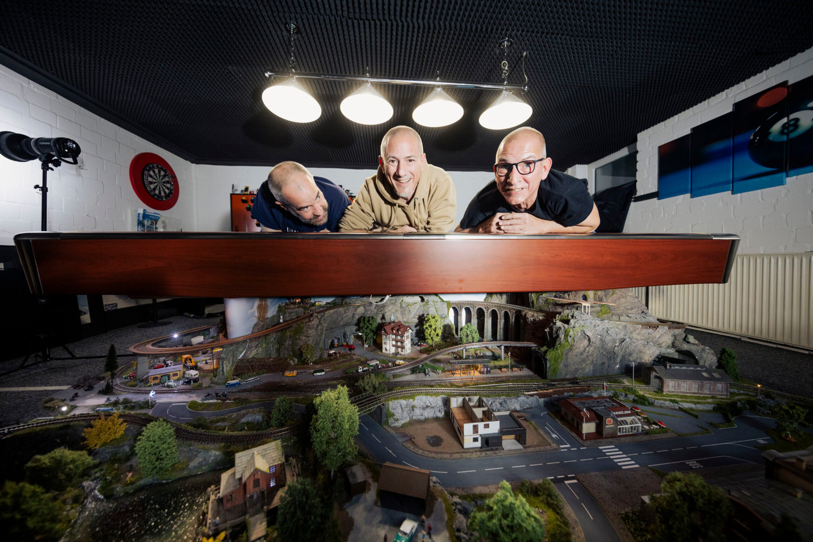 Unter der Begleitung ihres gemeinsamen Freundes Dirk (ebenfalls heute 50) wurde das Projekt dokumentiert. Alles nur mit dem Iphone. Immerhin 6.8 Millionen Views hat ein REEL ;) Dirk meinte eines Abends: "Wenn ihr die Bahn unter den Tisch zimmert , mache ich Videos und die Kanäle auf. PMR war geboren. Dirk ist alter Hase bei der Vermarktung von SBO´s (kleine, inhabergeführte Unternehmen) mittels authentischer Videos. Und er macht das seit 20 Jahren. Mit Fotos und Videos hielten sie also den Wiederaufbau ihrer Modellbahn unterm Billardtisch fest und teilten ihre Fortschritte mit der Welt. So entstand die Idee zu „Modellbahn unterm Billardtisch“ – ein kreatives Hobby, das mehr als nur ein nostalgisches Projekt war. Es wurde zu einer Leidenschaft, die weit über den Billardtisch hinausging und die digitale Welt eroberte.