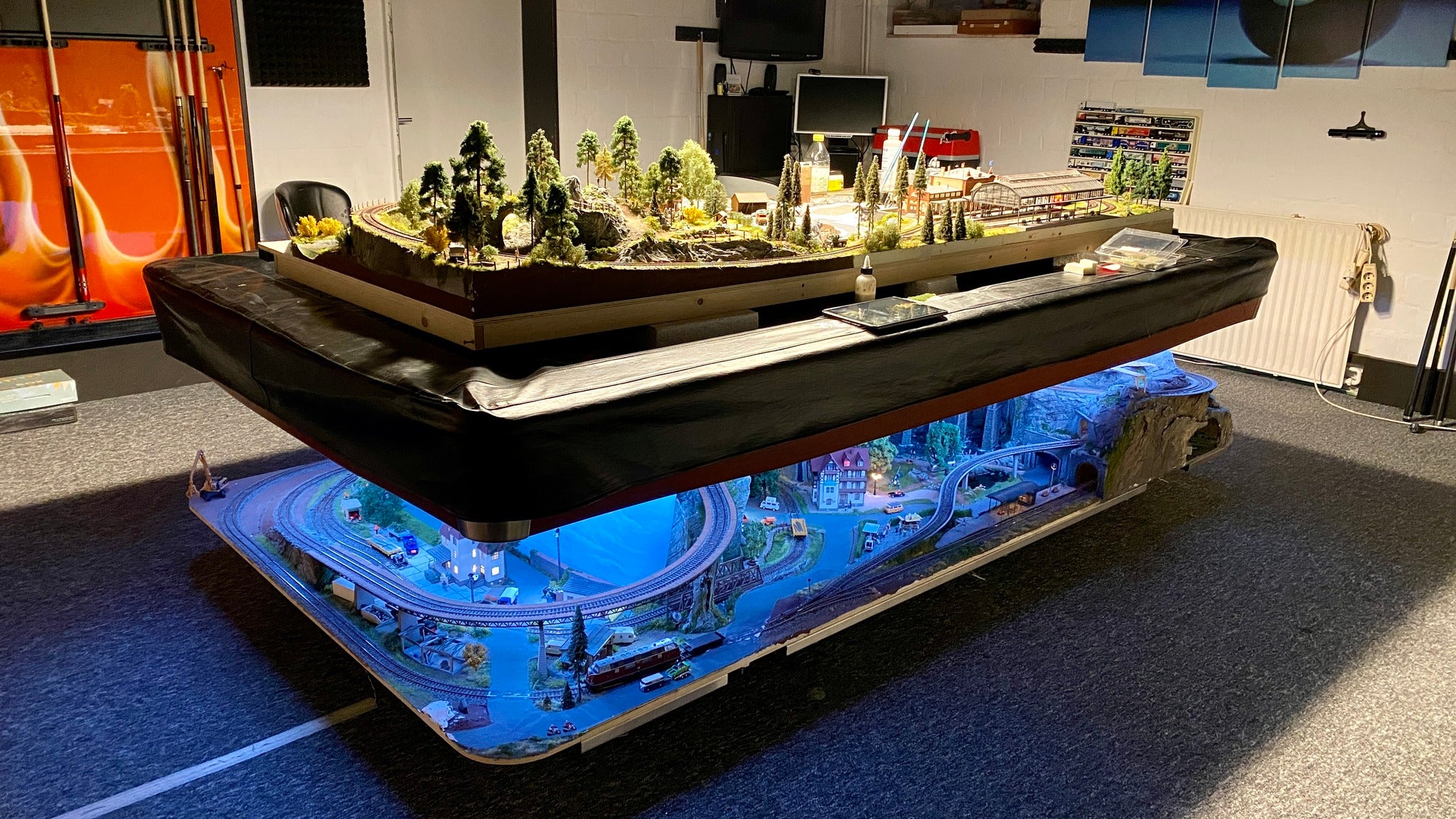 Le projet a été documenté avec l'accompagnement de leur ami commun Dirk (également âgé de 50 ans). Tout cela avec juste l'iPhone. Après tout, une BOBINE compte 6,8 millions de vues ;) Dirk a dit un soir : « Si tu mets la piste sous la table, je ferai des vidéos et j'ouvrirai les chaînes. » PMR était né. Dirk est un habitué du marketing des PME (petites entreprises dirigées par leurs propriétaires) à l'aide de vidéos authentiques. Et il le fait depuis 20 ans. Ils ont utilisé des photos et des vidéos pour documenter la reconstruction de leur chemin de fer miniature sous la table de billard et ont partagé leurs progrès avec le monde. C'est ainsi qu'est née l'idée du « Model Railway Under the Billiard Table » – un passe-temps créatif qui était plus qu'un simple projet nostalgique. C'est devenu une passion qui a dépassé de loin la table de billard et a conquis le monde numérique.
